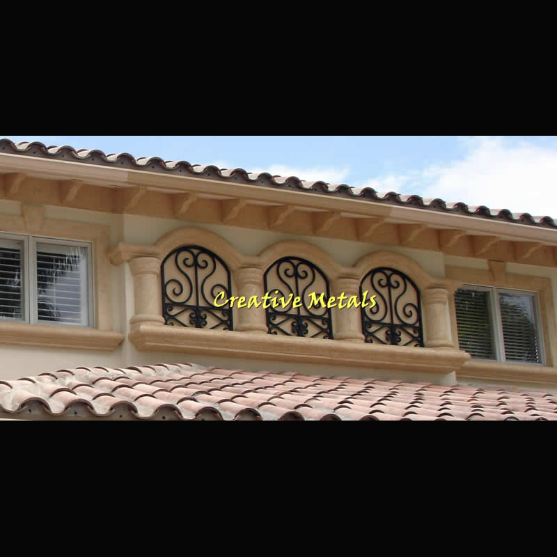 These simple to elaborate pieces are used to fill exterior stucco niches, stucco band designs, to cover small or odd shaped windows or to accentuate a plain area on the exterior of your home. We make our accents from welded aluminum and not steel, so rust will never be a factor.